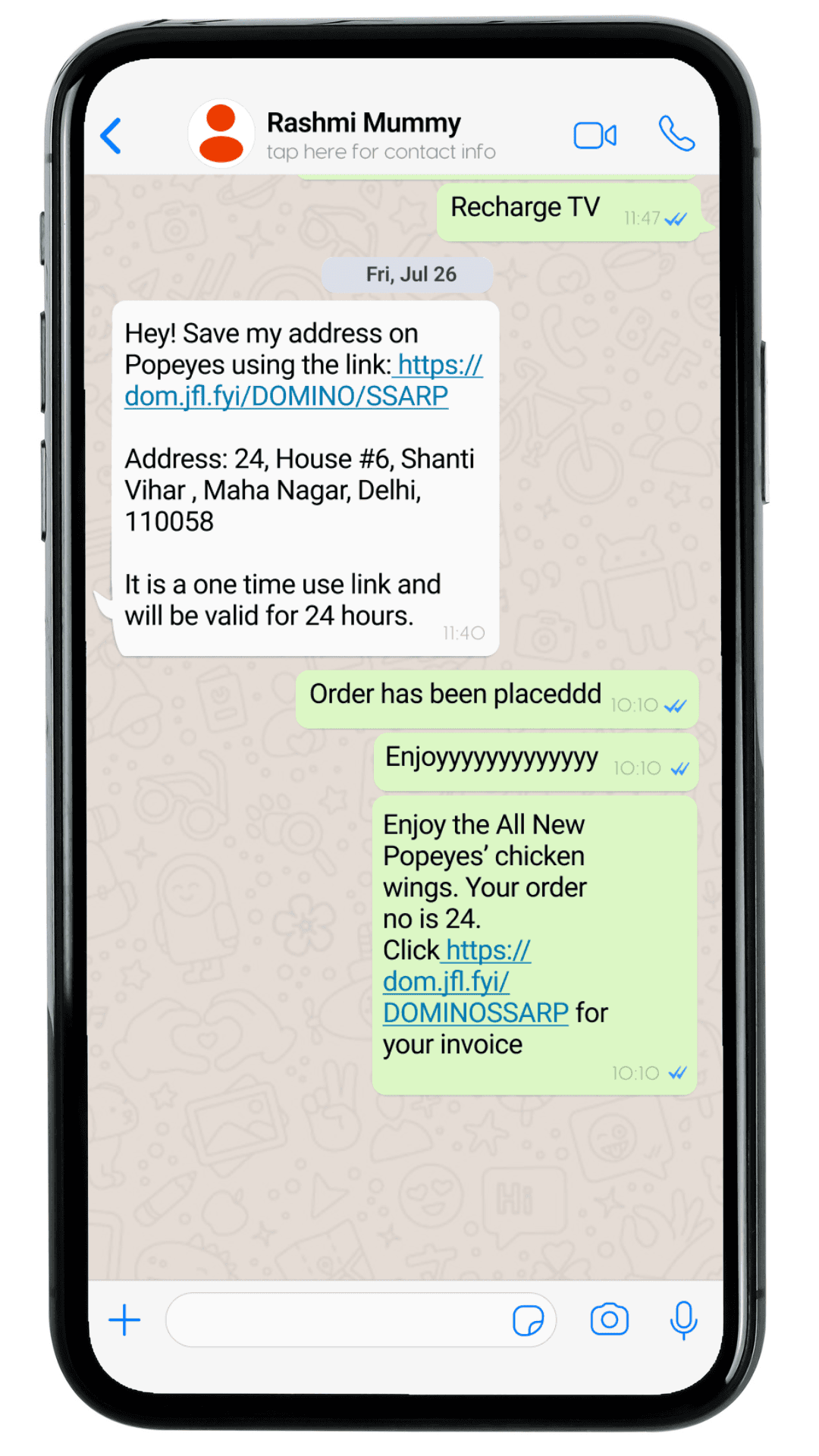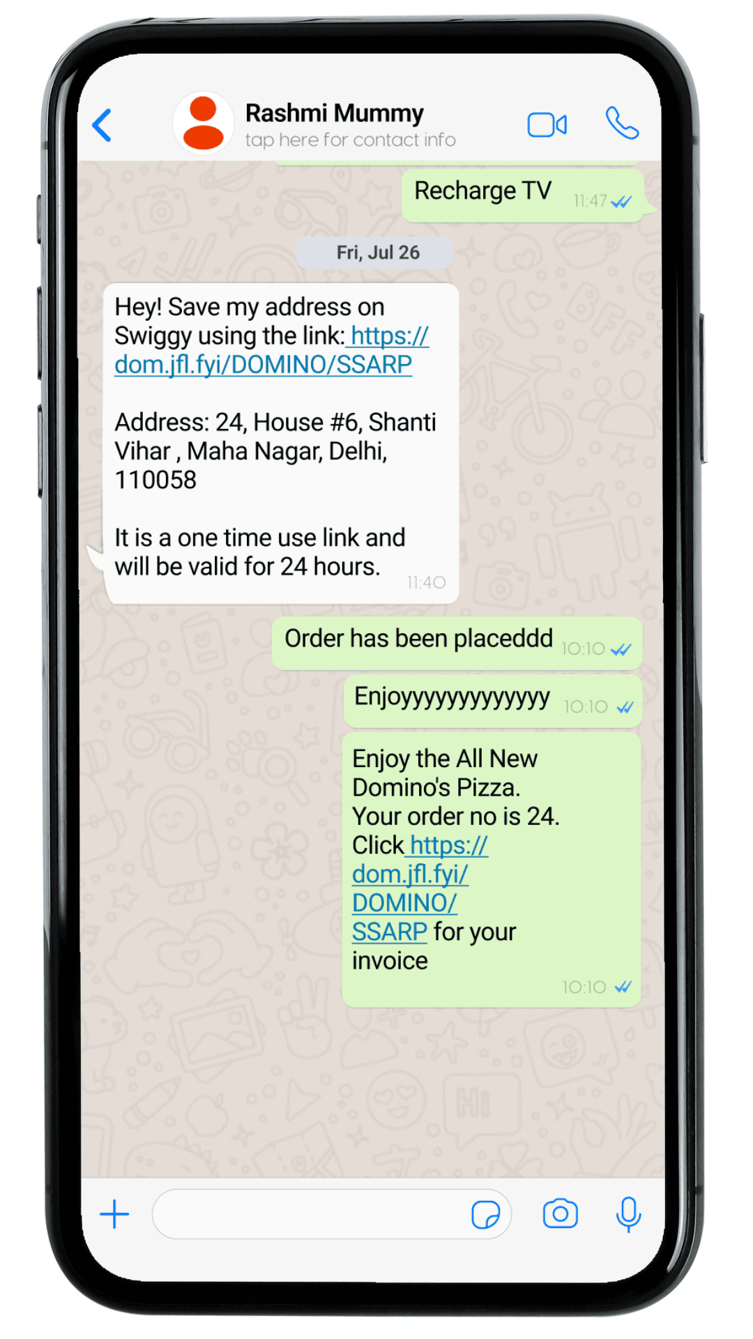 Address linked shared on WhatsApp