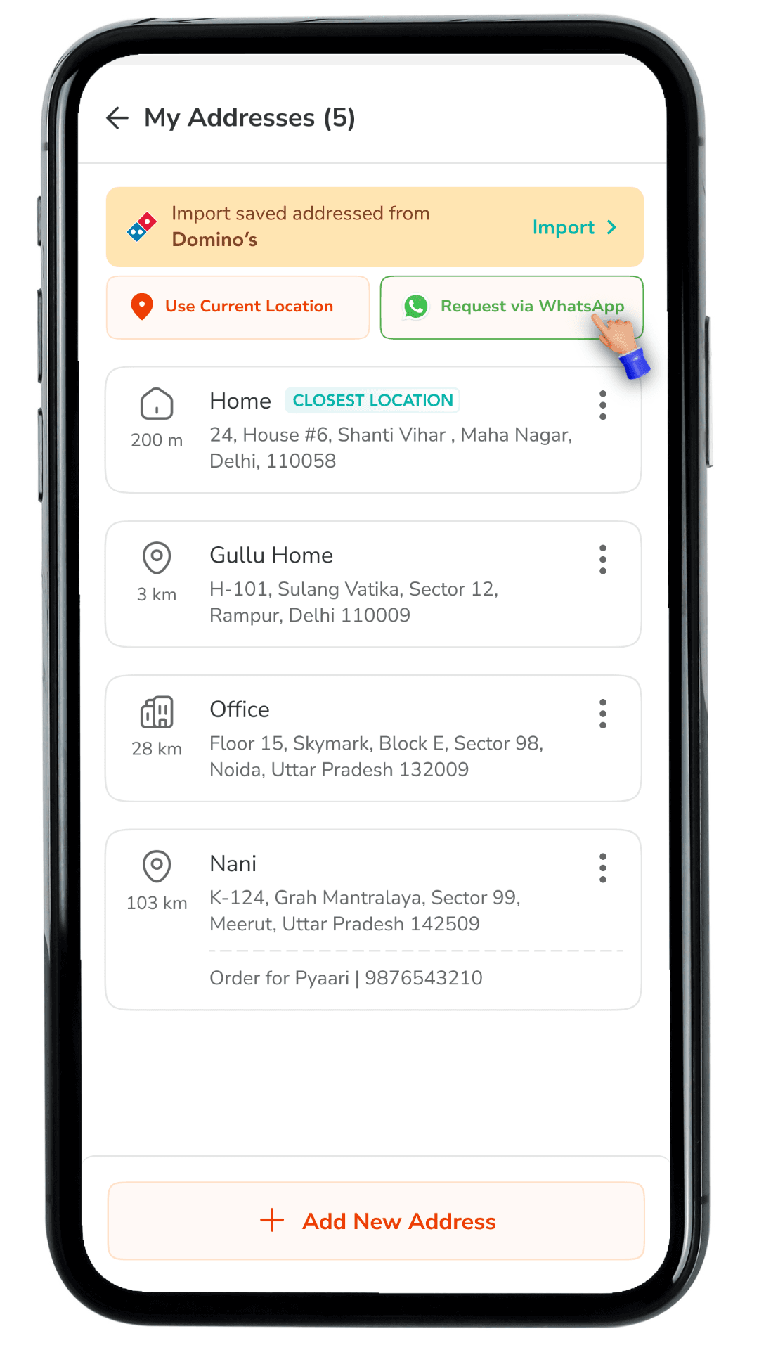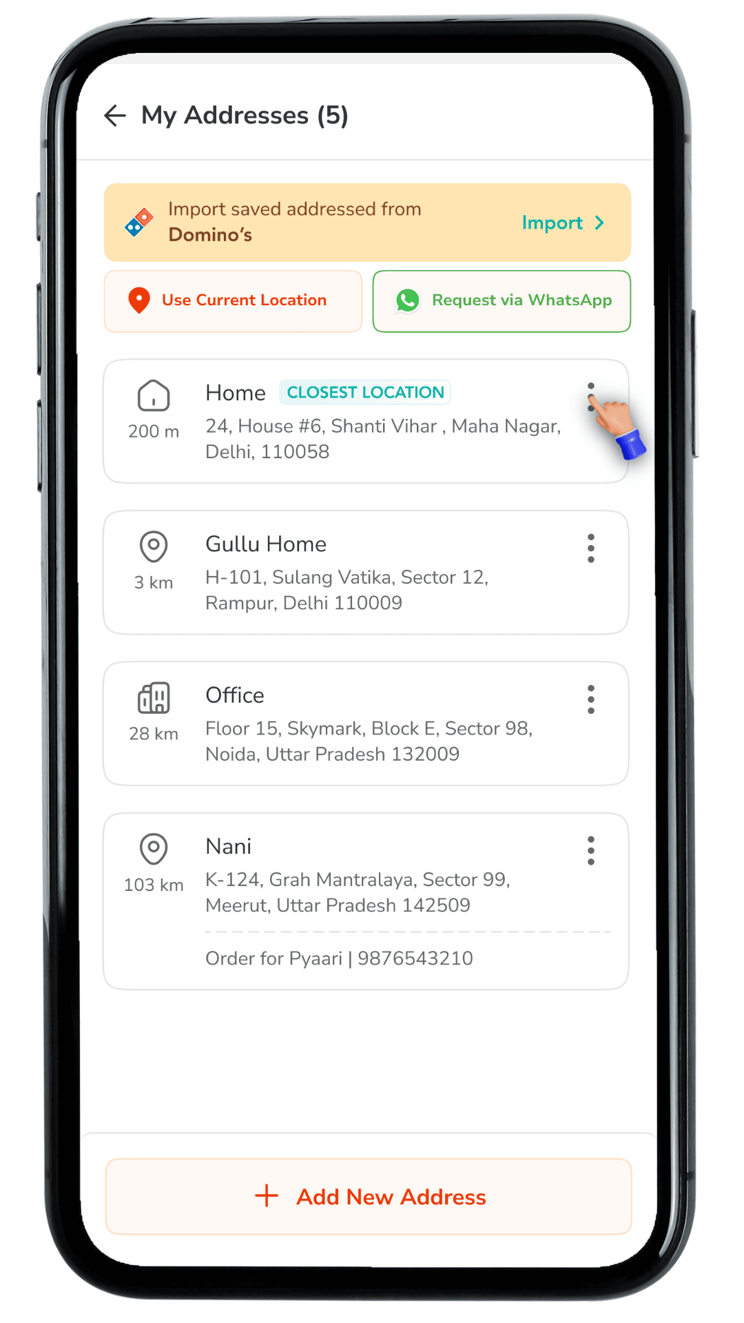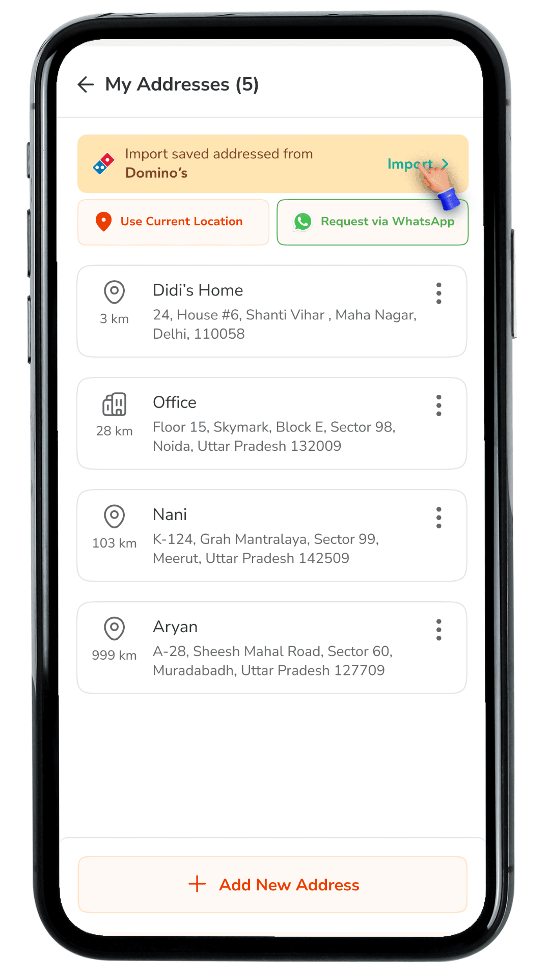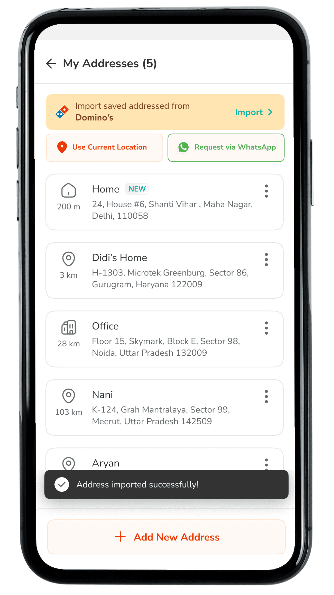 My Addresses & Import from Domino's