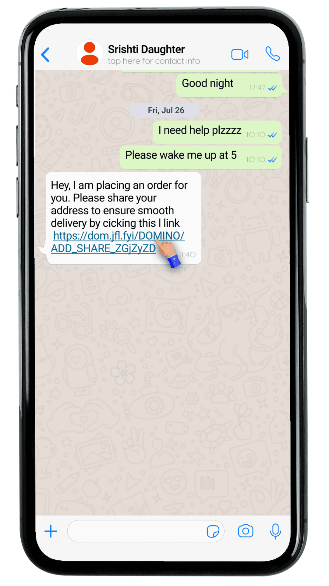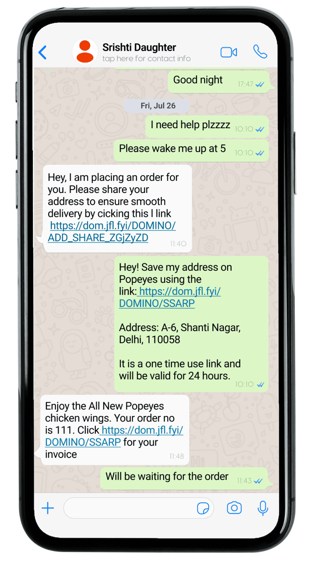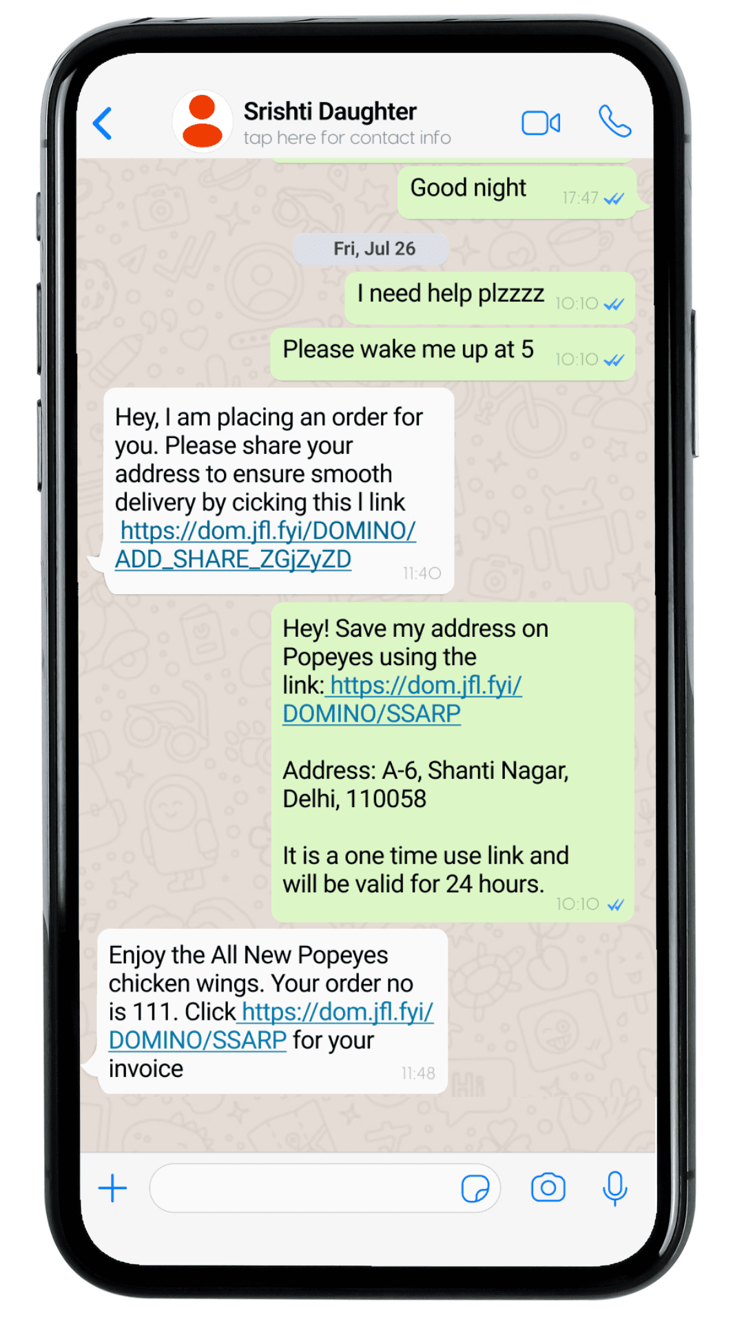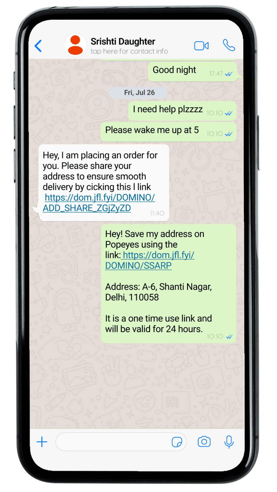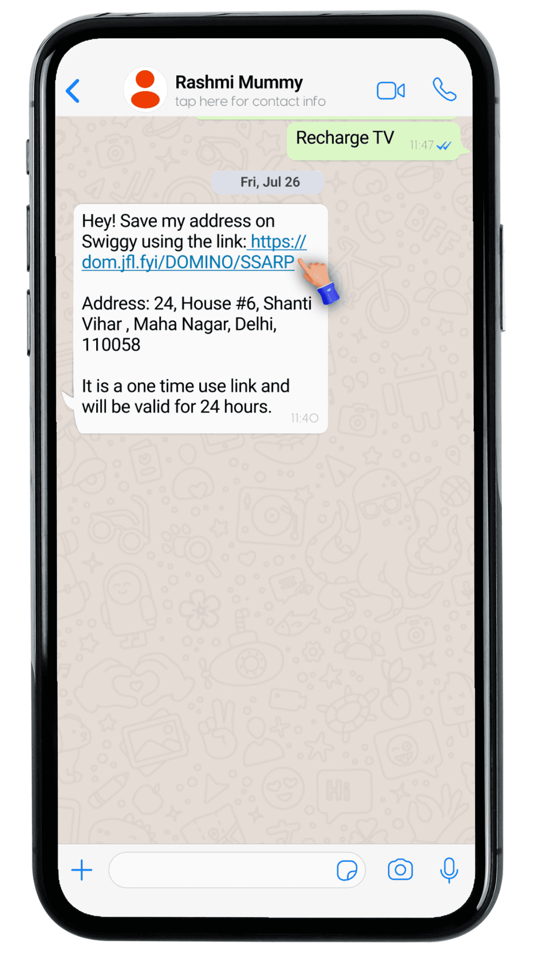 Address link shared via message on WhatsApp