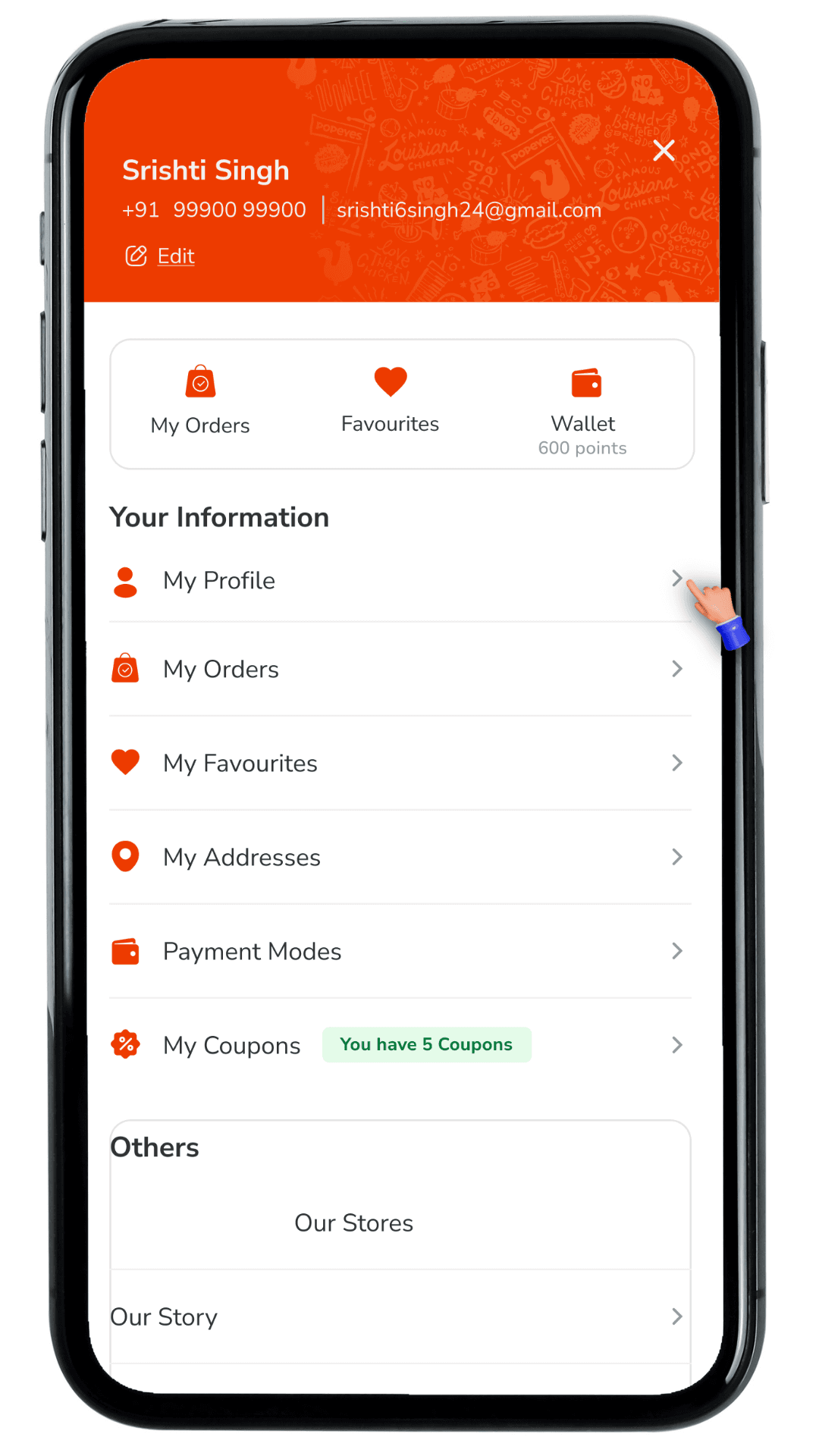 He uses both Domino's and Popeyes but hates setting up his profile twice.