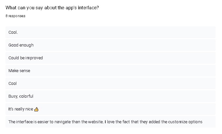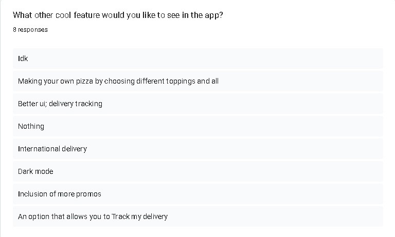 During this phase, I used Google forms when conducting these surveys for research. The data below shows information received from the survey: