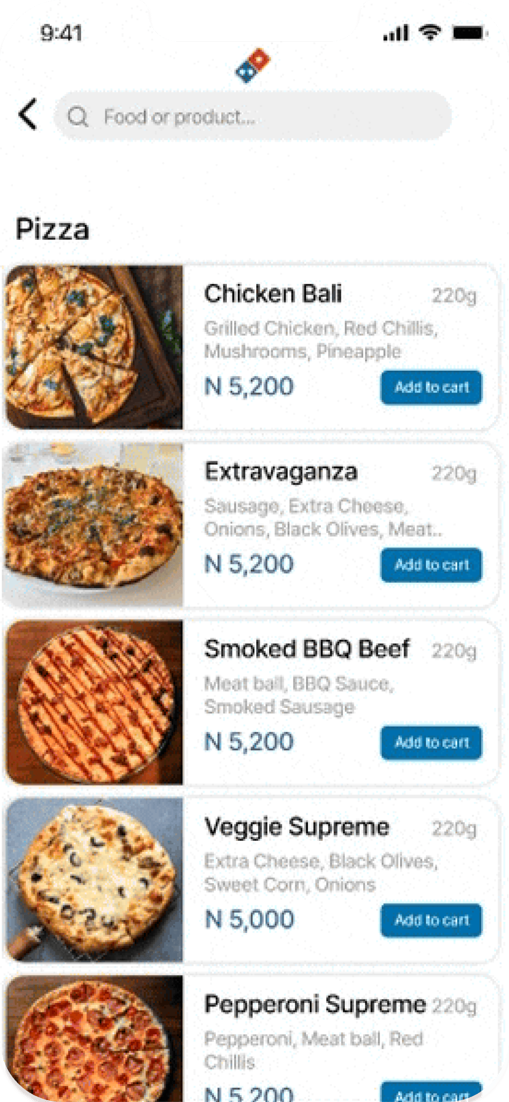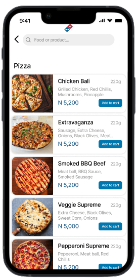 The layout of the pizza cards could not permit customers to see a wider range of pizzas available at a glance