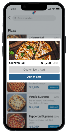 The toppings of the pizza was clearly outlined even without clicking into the card